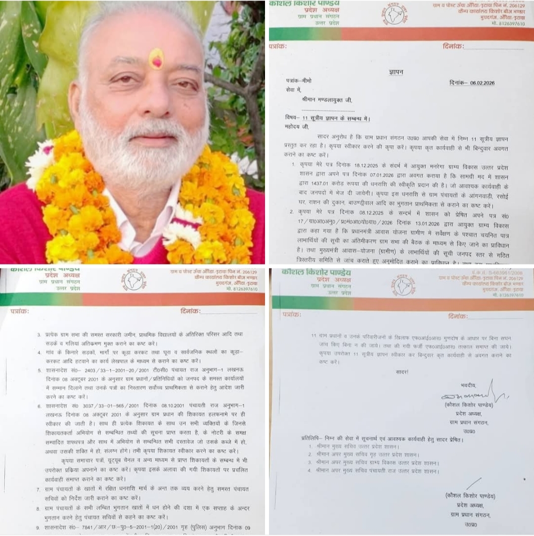 प्रदेश अध्यक्ष ग्राम प्रधान संगठन कौशल किशोर पांडे ने सभी मंडलायुक्त और जिलाधिकारी को भेजा 11 सूत्रीय मांग…