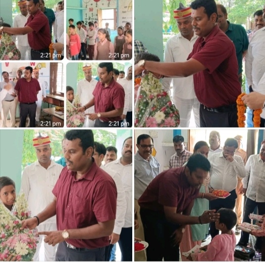 ग्रीष्मावकाश के उपरान्त विद्यालय पुनः खुलने नए सत्र के शुभारंभ पर विद्यालय समुदाय द्वारा छात्र-छात्राओं का स्वागत किया जा रहा है जिसके क्रम में कम्पोजिट प्राथमिक विद्यालय मधुबेनिया का जिलाधिकारी डॉ0 राजागणपति आर0 ने छात्र-छात्राओं का तिलक लगाकर माला पहनाकर एवं गुलदस्ता देकर स्वागत किया।
