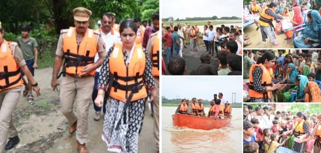 पुलिस अधीक्षक ने बाढ़ प्रभावित क्षेत्र ग्राम इमिलिया में निरीक्षण व जनसम्पर्क कर खाद्य सामग्री का वितरण किया