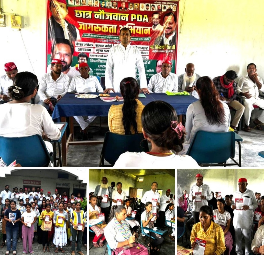 सिद्धार्थनगर। समाजवादी पार्टी के राष्ट्रीय अध्यक्ष अखिलेश यादव के निर्देशन एवं मुलायम सिंह यादव यूथ ब्रिगेड के राष्ट्रीय अध्यक्ष सिद्धार्थ सिंह के नेतृत्व मे छात्र नौजवान पीडीए जागरूकता अभियान चलाकर छात्र व छात्राओं से जनसंपर्क कर के पर्चा वितरण किया गया,कार्यक्रम शोहरतगढ़ विधनसभा के चिल्हिया में स्थित स्व: गौकरन सिंह पीजी महाविद्यालय में संपन्न हुआ। इस अभियान में मुख्य अतिथि पूर्व सपा प्रत्याशी उग्रसेन सिंह ने कहा कि पूर्व की अखिलेश यादव की सरकार मे कन्या विद्याधन, लैपटाप, बेरोजगारी भत्ता, समेत अन्य योजनाओं का लाभ सीधे छात्र व छात्राओं को मिला। प्रदेश का हर छात्र नौजवान समाजवादी पार्टी की तरफ बहुत आशा और उम्मीद भरी निगाहों से देख रहा है। यह दर्शाता है की 2027 सपा की सरकार बनने जा रही है।