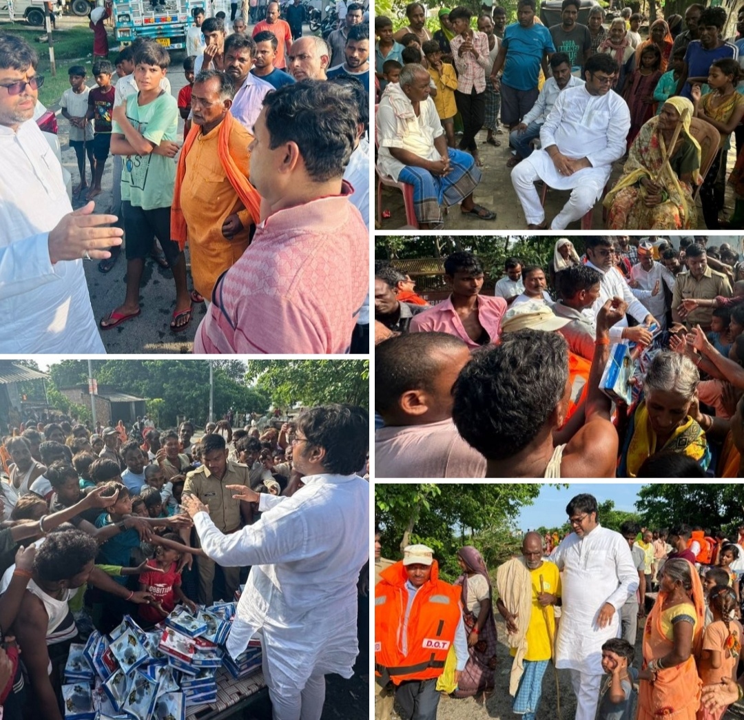 विधायक ने बाढ़ प्रभावित लोगो को वितरण किए बाढ़ राहत सामग्री